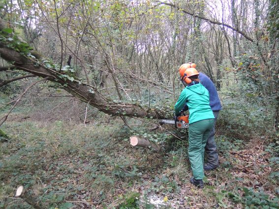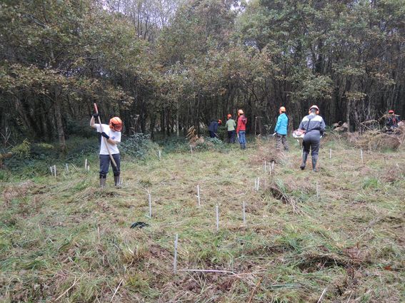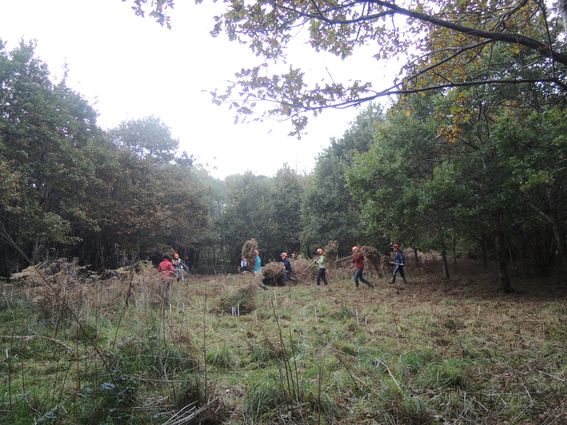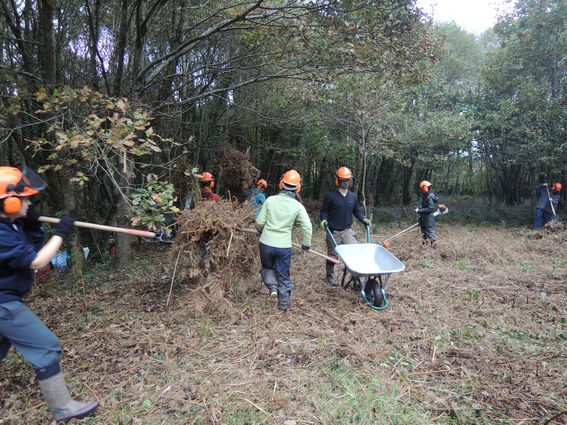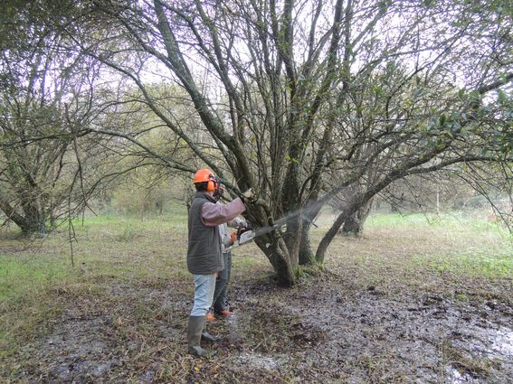 L'objectif du chantier, mis en oeuvre par les 1ère année de BTS/GPN du lycée de Suscinio et de leurs professeurs, était d'appauvrir par une fauche avec exportation de la fougère aigle et du dactyle, le couvert arboré a également été éclaircit. Les saules à terre ont été débités pour éviter que de nouveaux rejets ne se développent.